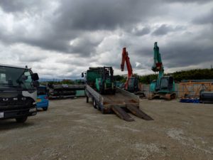 早朝に南港で積み込みをして大阪南部の建設機械ヤードにて納品です。
