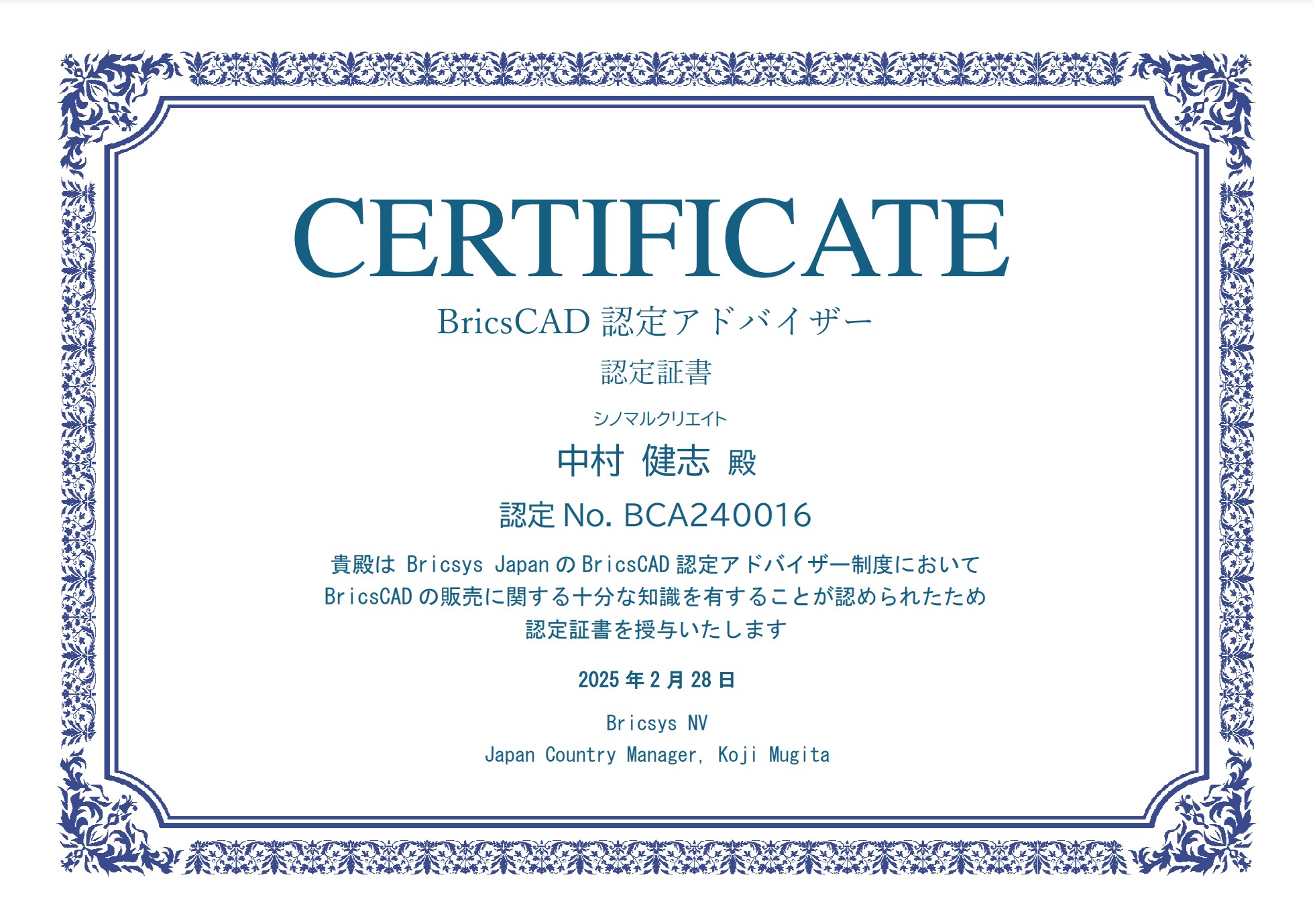 BricsCAD認定アドバイザーになりました2025年3月2日